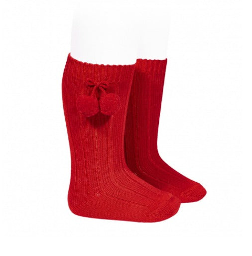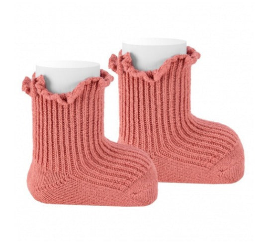 Tights with elastic suspenders Merino wool blend ribbed - Pink