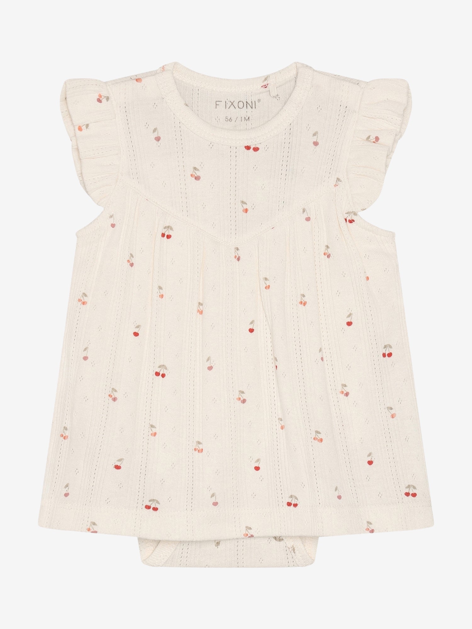 - Body dress from FIXONI. The body dress has a skirt with gathers and frills at the shoulders. The body dress has short sleeves and closes with snaps between the legs and on the shoulder. Certified acc. to GOTS - organic CERES-0366 Certified acc. to OEKO-TEX® STANDARD 100 Cert. No. 2276-364 DTI