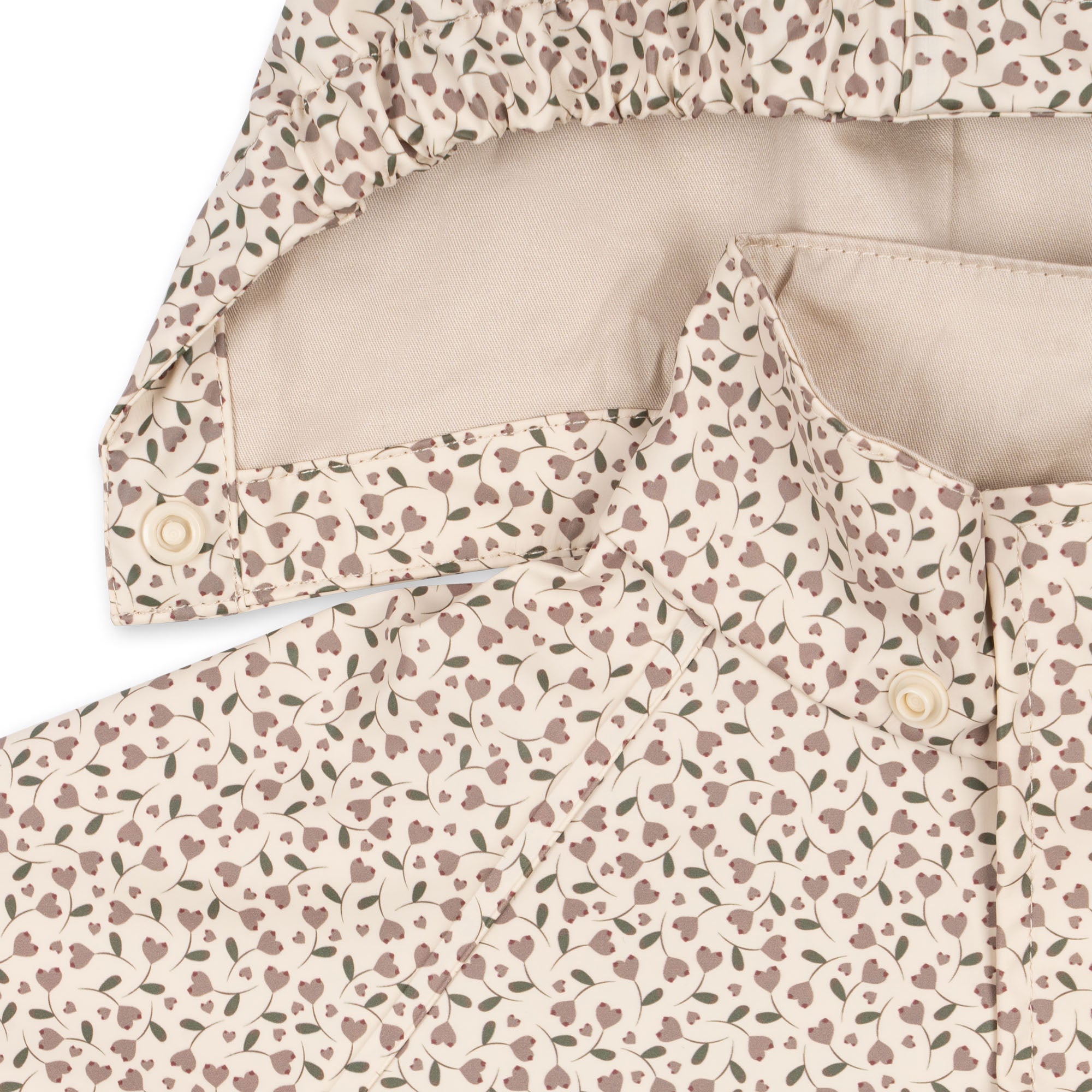 The hood is removable and attaches with buttons.