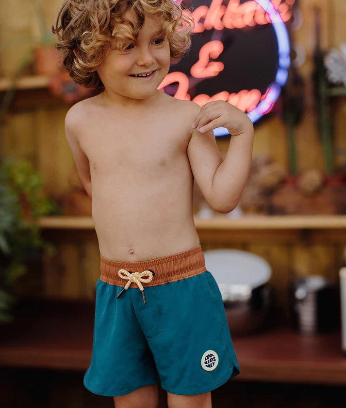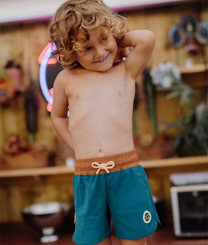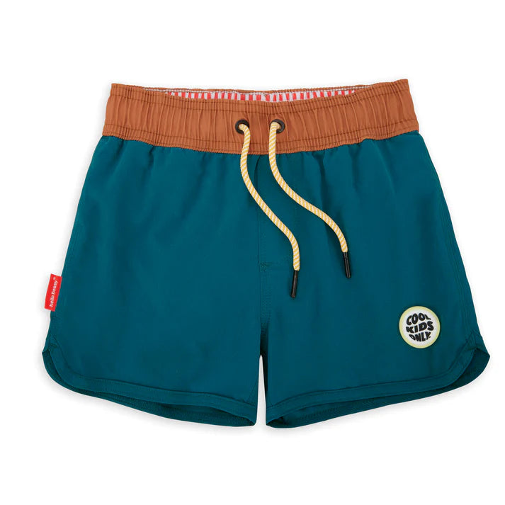 The Anti-UV Swimsuit for Boys, Mini Duck Blue, is a must-have for kids. It pairs perfectly with our best-selling Mini Duck Blue cap for kids and babies. Don't get them stolen. Children's swimsuit available in three sizes, from 3 years old.