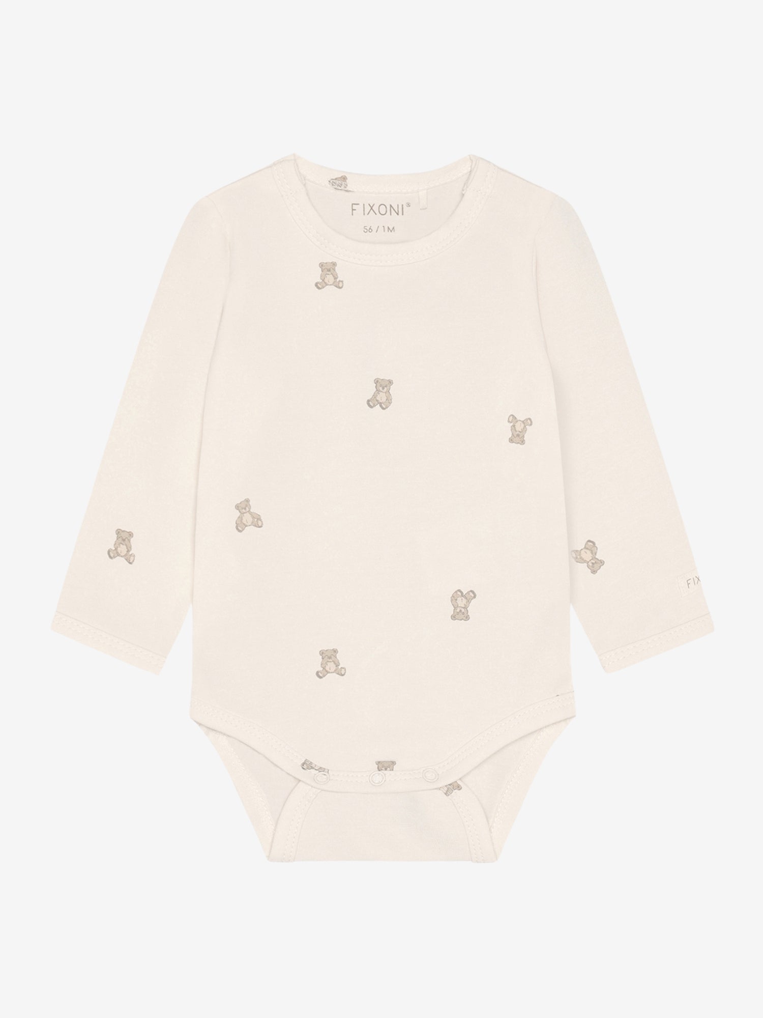 Long-sleeved body with all-over-print from FIXONI. The body closes with snaps at the shoulder and between the legs. Certified acc. to GOTS - organic CERES-0366 Certified acc. to OEKO-TEX® STANDARD 100 Cert. No. 2276-364 DTI