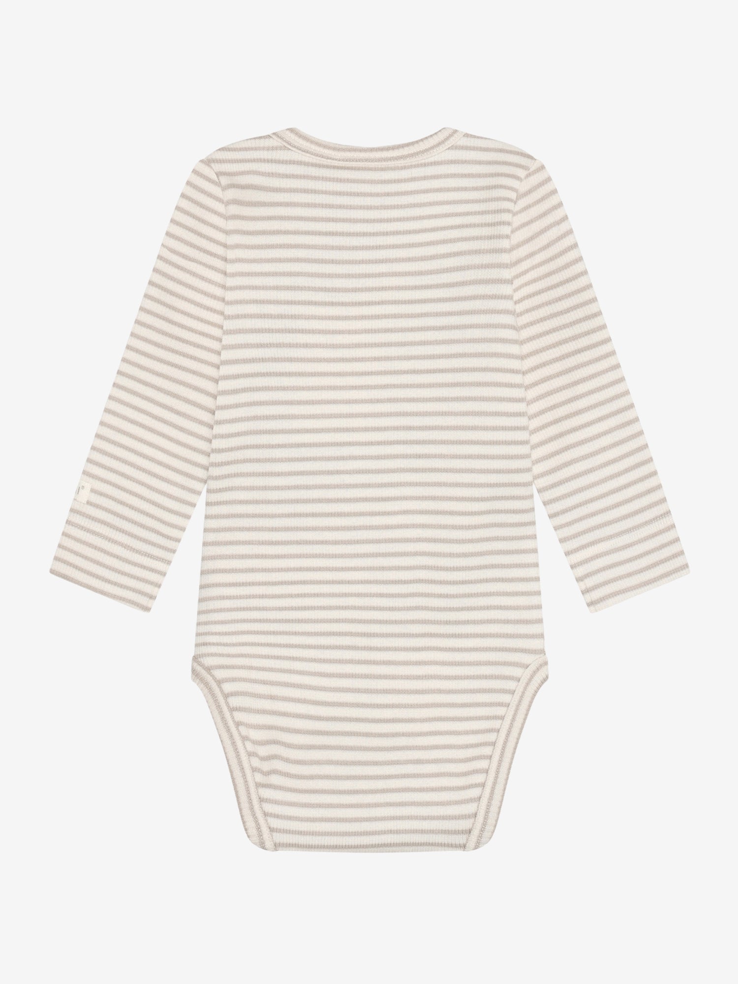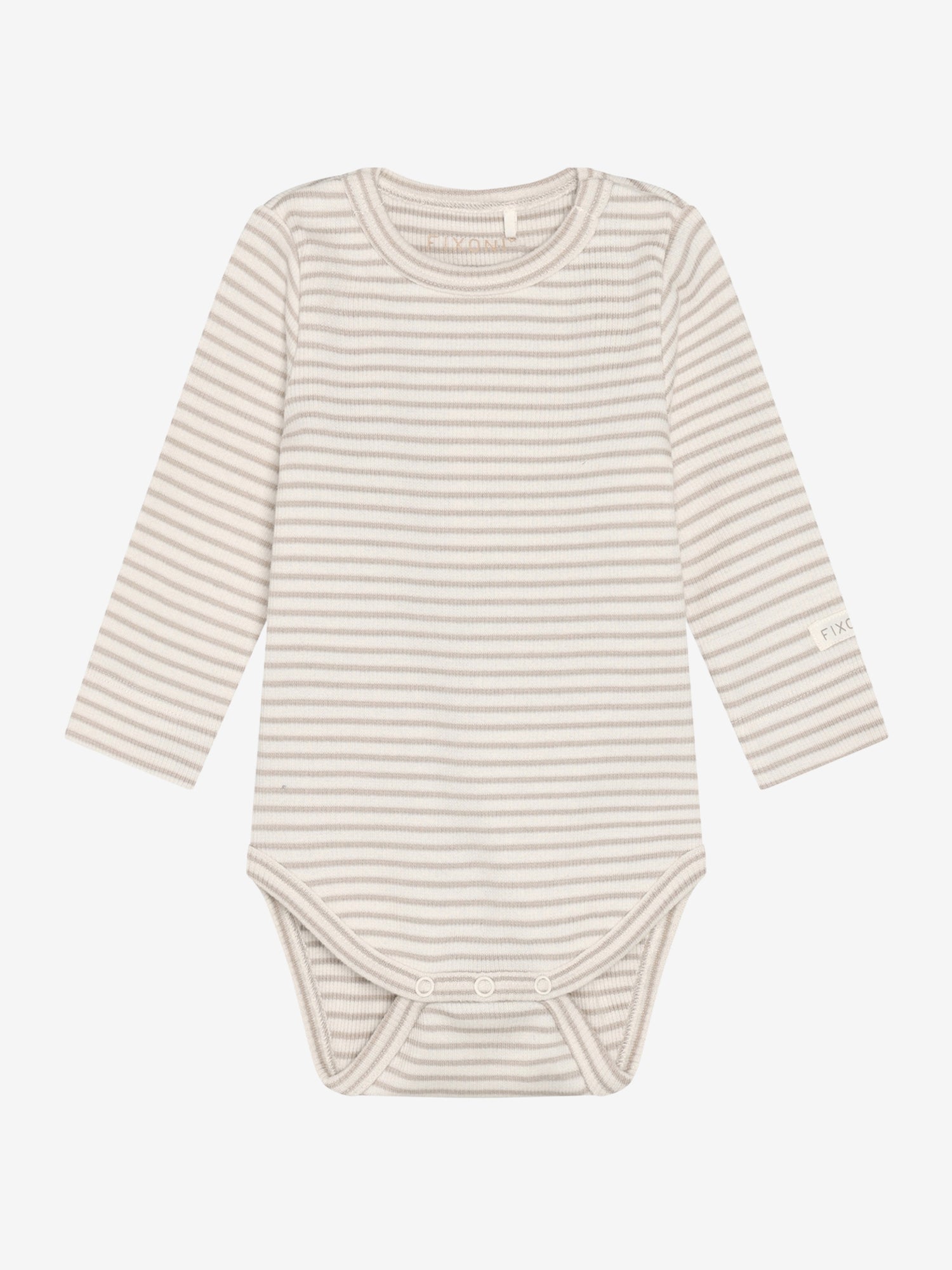 Long-sleeved rib body from FIXONI. The body closes with snaps at the shoulder and between the legs. Certified acc. to GOTS - organic CERES-0366