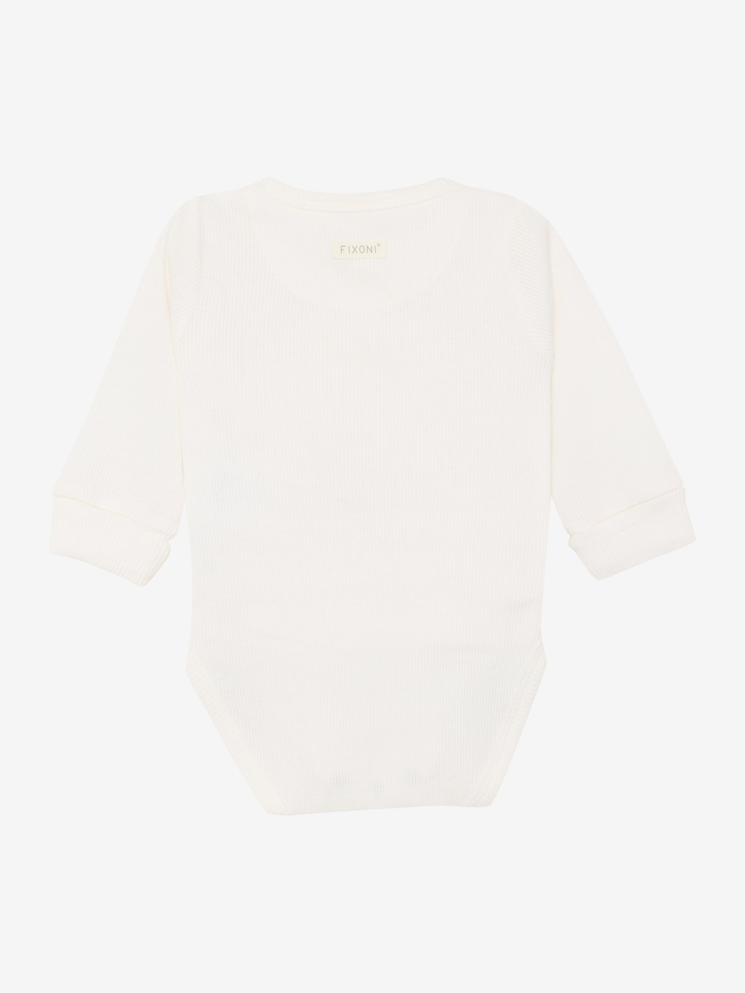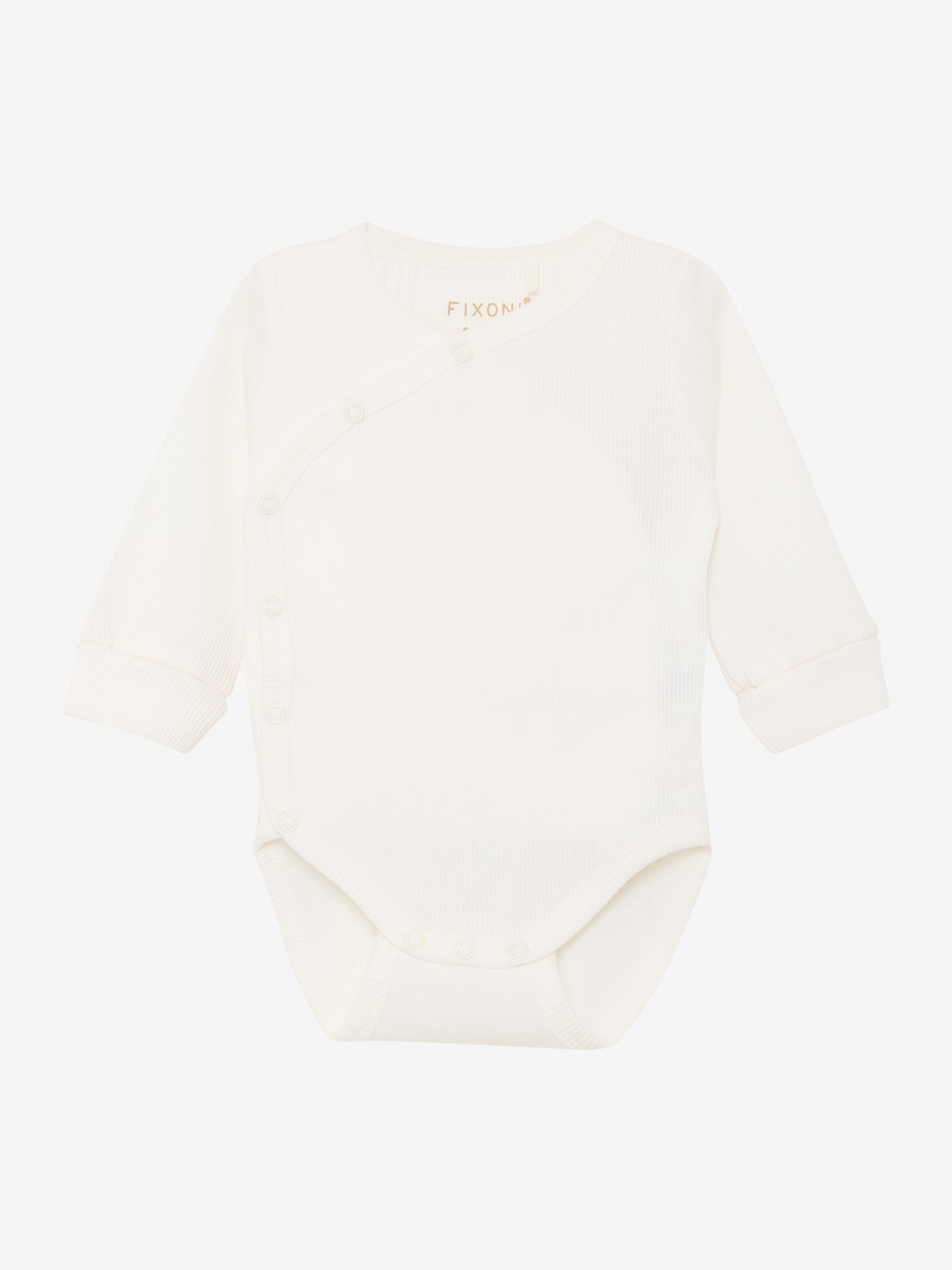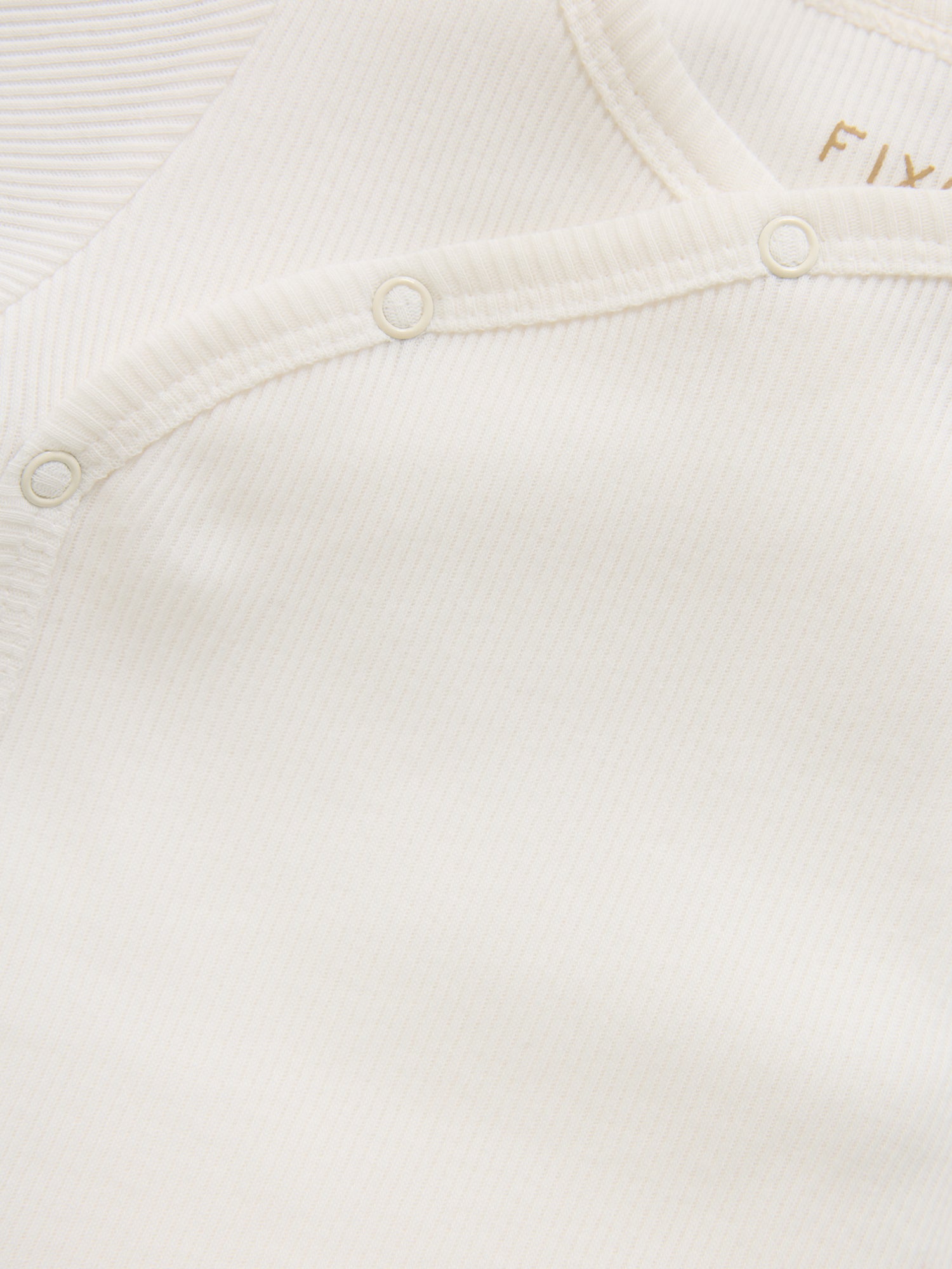 Sweet, solid-colored FIXONI wrap body with long sleeves, made from fine ribbed quality The body’s sleeves can be folded up at the wrists, allowing the length to be adjusted as needed. There are two rows of snap buttons between the legs, allowing the body to grow together with the baby. Closes easily with snap buttons along the front. Certified acc. to GOTS - organic CERES-0366