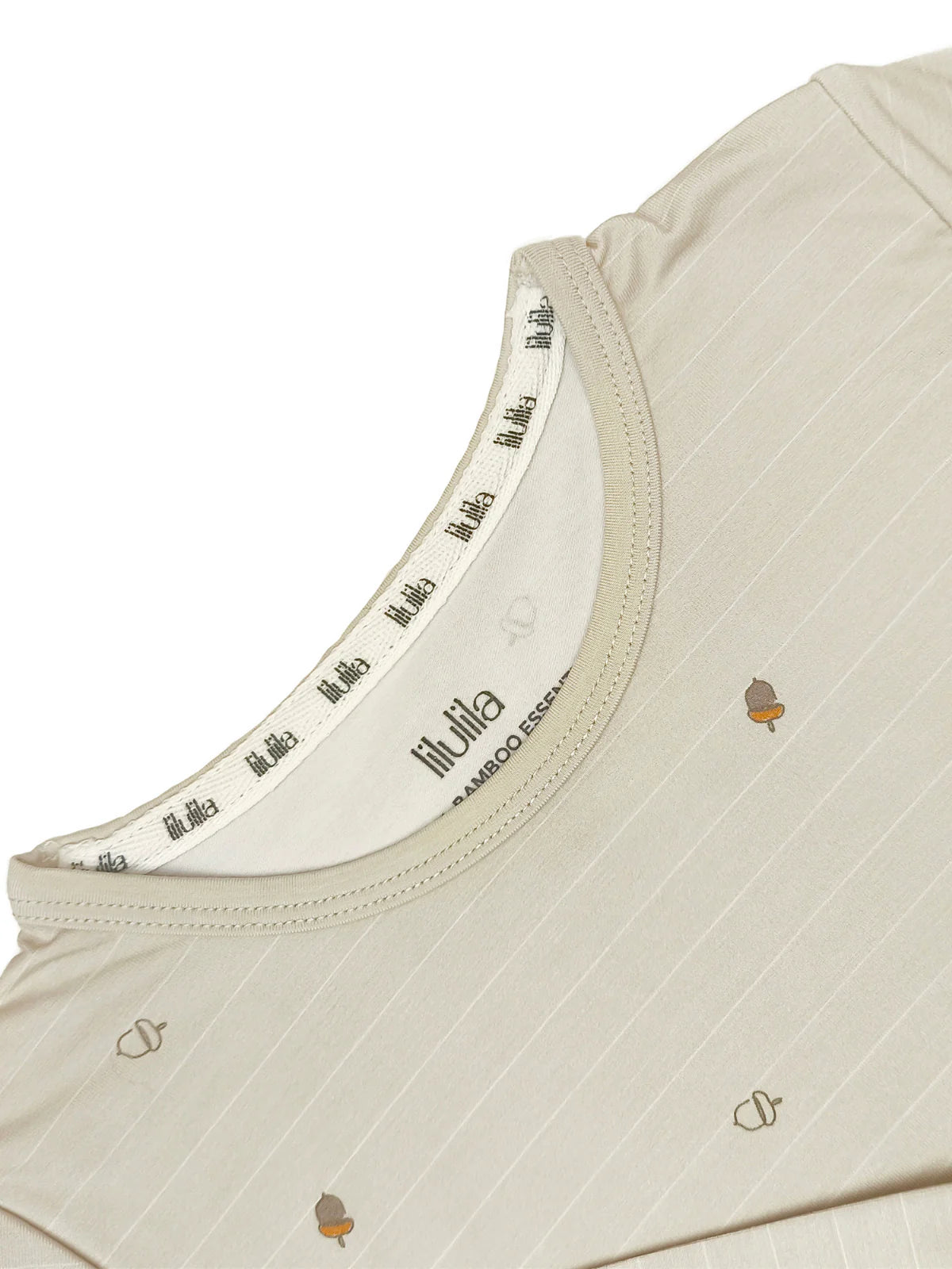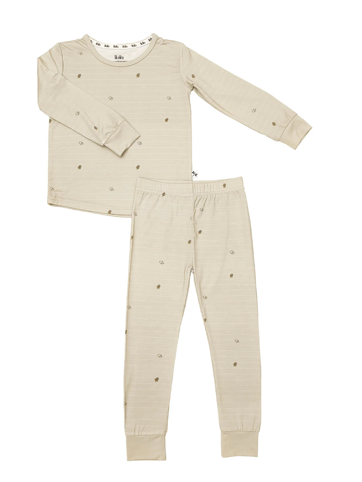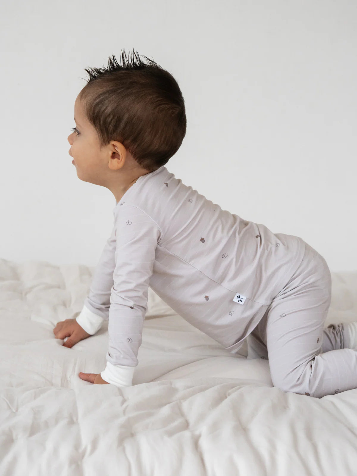 Dream-ready softness meets everyday durability. These bamboo PJs keep little acorn-collectors comfy from story time to sunrise with a subtle neutral stripe and scattered acorns.